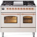ILVE Nostalgie II 40" Dual Fuel Liquid Propane Range, Antique White, Copper Trim UPD40FNMPAWPLP