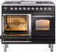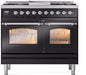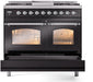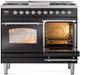 ILVE Nostalgie II 40" Dual Fuel Liquid Propane Range, Glossy Black, Chrome Trim UPD40FNMPBKCLP