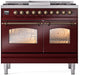 ILVE Nostalgie II 40" Dual Fuel Natural Gas Range, Burgundy, Bronze Trim UPD40FNMPBUB