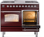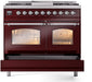 ILVE Nostalgie II 40" Dual Fuel Natural Gas Range, Burgundy, Chrome Trim UPD40FNMPBUC
