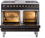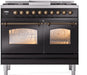 ILVE Nostalgie II 40" Dual Fuel Natural Gas Range, Glossy Black, Bronze Trim UPD40FNMPBKB