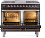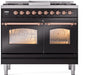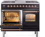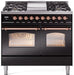 ILVE Nostalgie II 40" Dual Fuel Natural Gas Range, Glossy Black, Copper Trim UPD40FNMPBKP