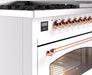 ILVE Nostalgie II 48" Dual Fuel Liquid Propane Range, White, Copper Trim UP48FNMPWHPLP