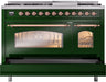 ILVE Nostalgie II 48" Dual Fuel Natural Gas Range, Emerald Green, Copper Trim UP48FNMPEGP