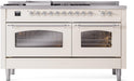 ILVE Nostalgie II 60" Dual Fuel Liquid Propane Range, Antique White, Chrome Trim UP60FSNMPAWCLP