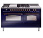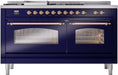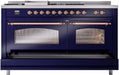 ILVE Nostalgie II 60" Dual Fuel Liquid Propane Range, Blue, Copper Trim UP60FSNMPMBPLP