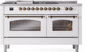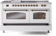 ILVE Nostalgie II 60" Dual Fuel Liquid Propane Range, White, Bronze Trim UP60FSNMPWHBLP