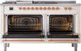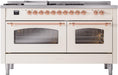 ILVE Nostalgie II 60" Dual Fuel Natural Gas Range, Antique White, Copper Trim UP60FSNMPAWP