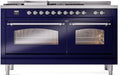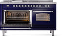 ILVE Nostalgie II 60" Dual Fuel Natural Gas Range, Blue, Chrome Trim UP60FSNMPMBC