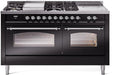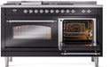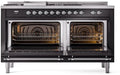 ILVE Nostalgie II 60" Dual Fuel Natural Gas Range, Glossy Black, Chrome Trim UP60FSNMPBKC