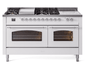 ILVE Nostalgie II 60" Dual Fuel Natural Gas Range, White, Chrome Trim UP60FSNMPWHC