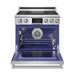 Blue LED Illuminated Knobs: Backlit knobs provide a modern aesthetic and clear visual indication when burners are in use.