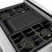 Continuous Cast-Iron Grates: Heavy-duty, edge-to-edge grates provide a stable cooking surface and allow effortless movement of cookware across burners.