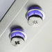Backlit LED knobs extend and illuminate to control lighting level and fan speed, then fully retract when not in use